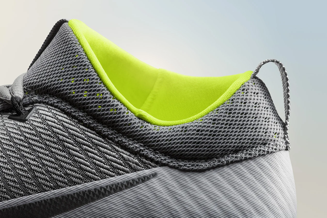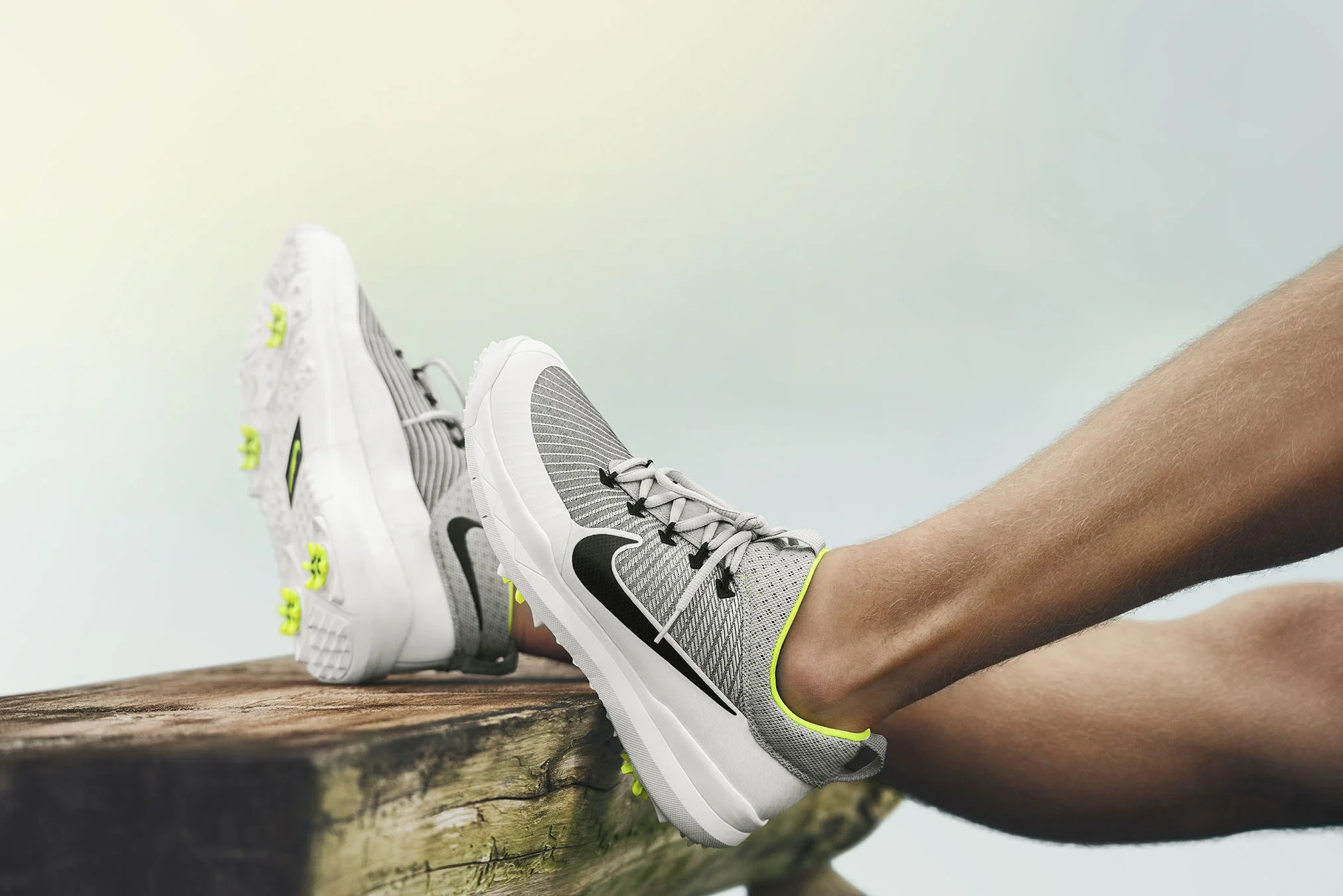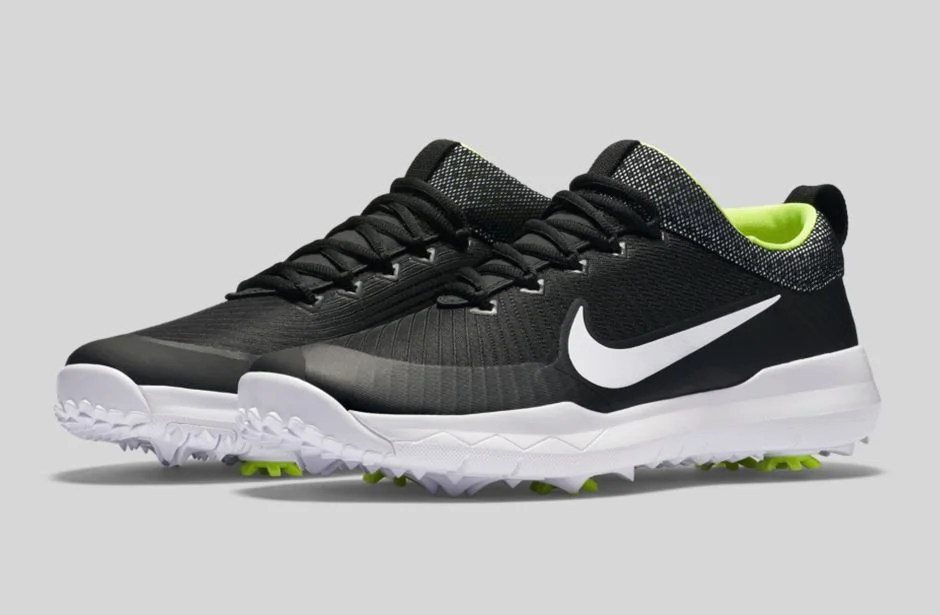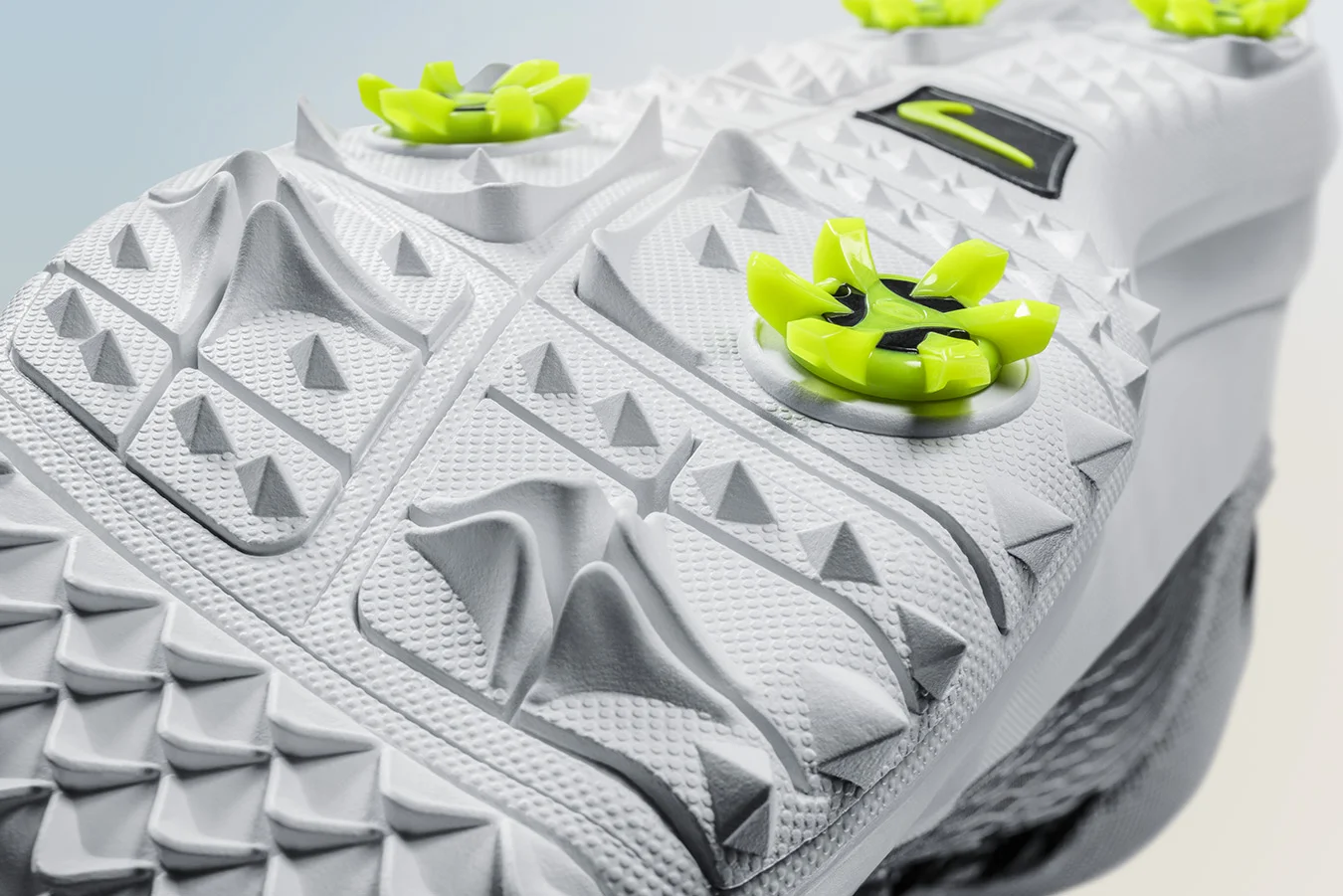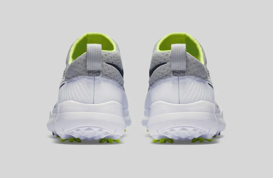 This is the first Nike Golf model to feature an asymmetrical collar height, where the medial side is slightly higher than the lateral. This feature, combined with the compression fit of the Dynamic Response Collar allowed more of the haptic feedback from the shoe to travel up the leg, increasing overall proprioception. It also had the side benefit of helping to keep debris out of the shoe.