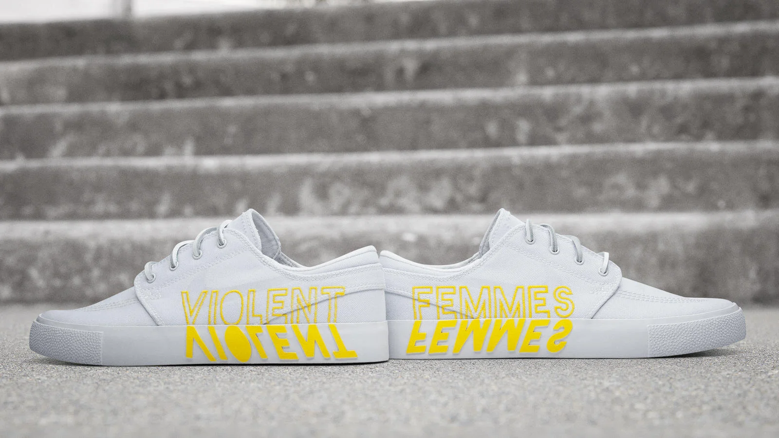 The shoe features “Violent” and “Femmes” chain-stitched on the lateral side of each shoe and the title from the group's hit 1994 song “I’m Nothing” — which Stefan sang with the band on a version that released on their album Hotel Last Resort — are printed in Janoski’s handwriting on the tongue. Stefan also created the custom sockliner art featured on the left and right shoes.